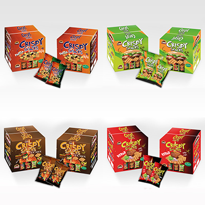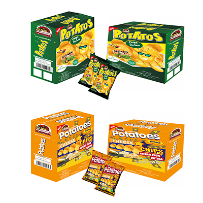 Snack de maïs soufflé : Colis en polyéthylène transparent de 5 unités, 25 sachets de 20 g/unité